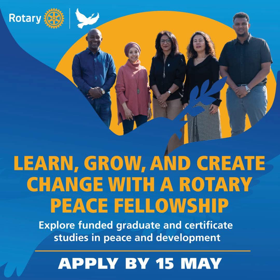 Monday, April 6, 2026Applications are now open for the fully funded 2027 Rotary Peace Fellowships, available for both: Masterโs Degree Programs Advanced Professional Development Certificates This is a chance for committed leaders in peace and development to advance their skills and make a global impact. ๐ Application Deadline: 15 May 2026