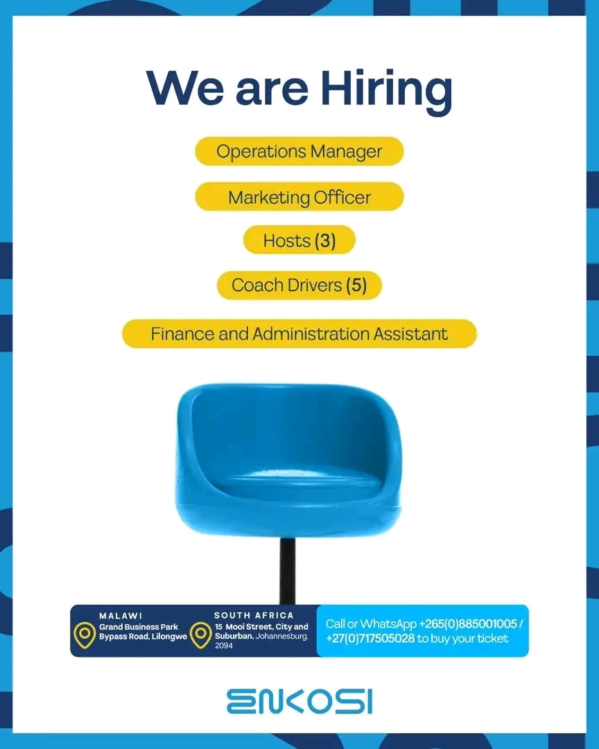 Enkosi coaches is looking to hire an operations manager, a marketing officer, hosts, coach drivers and a finance and administration assistant