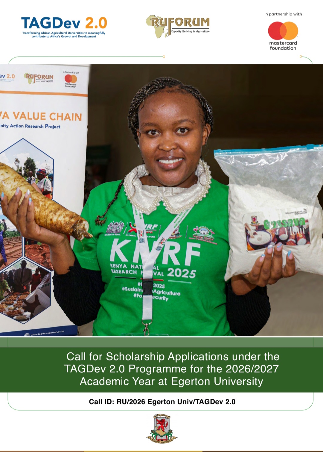 2.0 Eligible Programmes This call for Scholarships for the 2026/2027 academic year is open to applicants interested in and eligible to study Bachelor of Science in Agriculture, Bachelor of Science in Natural Resources Management, Bachelor of Science in Animal Science, Master of Science in Horticulture, Master of Science in Agribusiness Management, and Master of Science in Food Science at Egerton University, Kenya.