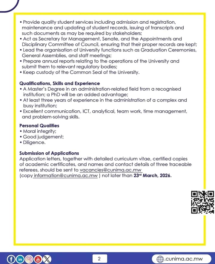 POST: UNIVERSITY REGISTRAR