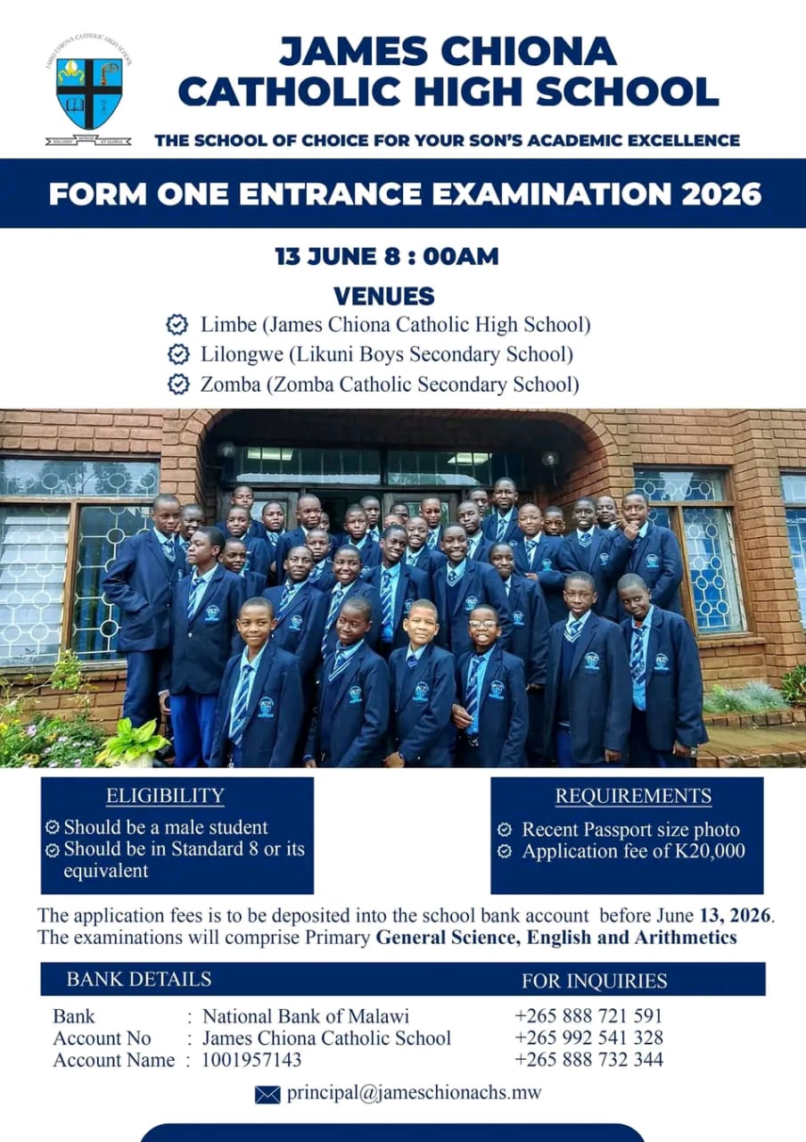 Date: 13 June Should be a male student Application fee of k20000