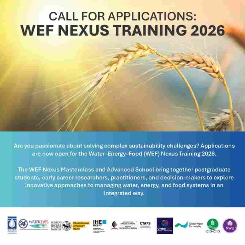 The WEF Nexus Training 2026 is designed to strengthen skills and knowledge in managing the linkages between water, energy, and food systems across Southern Africa.
