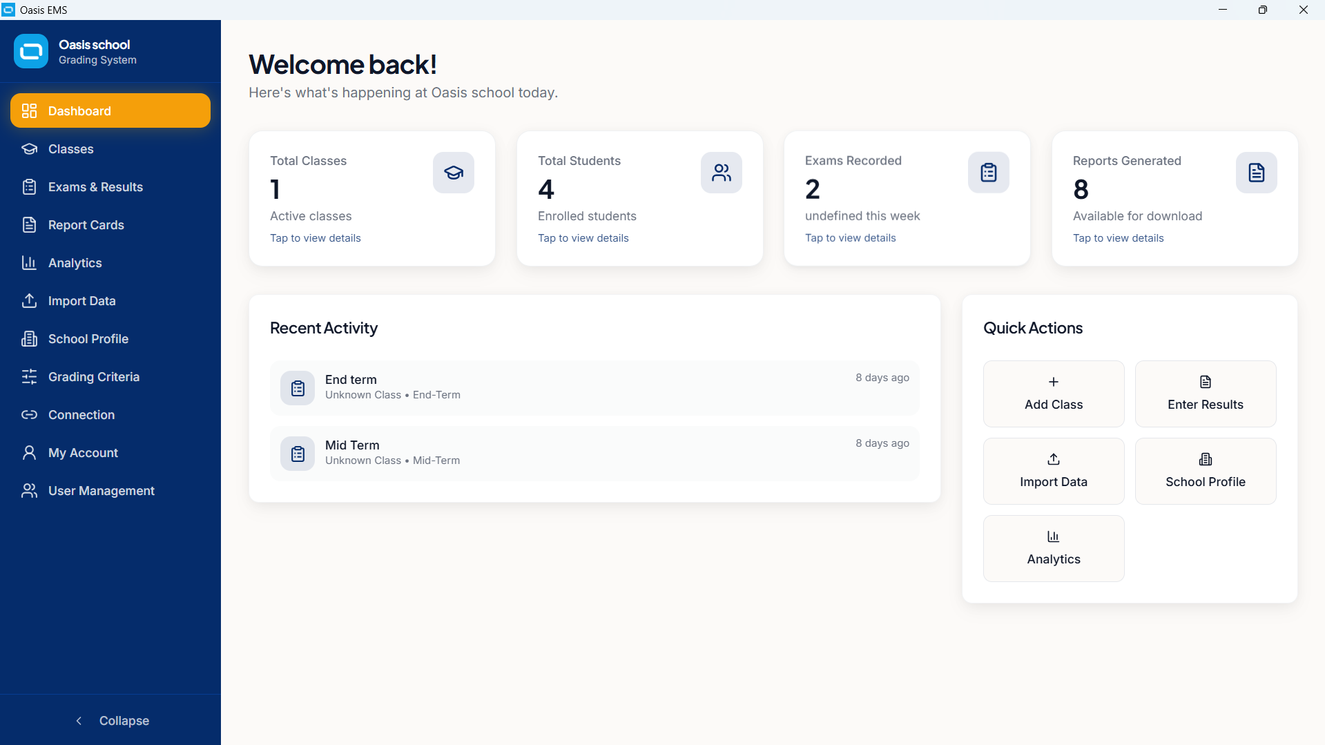 Wednesday, April 1, 2026Oasis EMS is offering schools to test out the software in their institutions currently with no charge in return for feedback. EMS enable you to manage examinations digitally, grading, bulk report card generation, analytics and more to take the load off teachers doing manual work. Contact Us today to setup oasis EMS in your school at the low cost of free.
