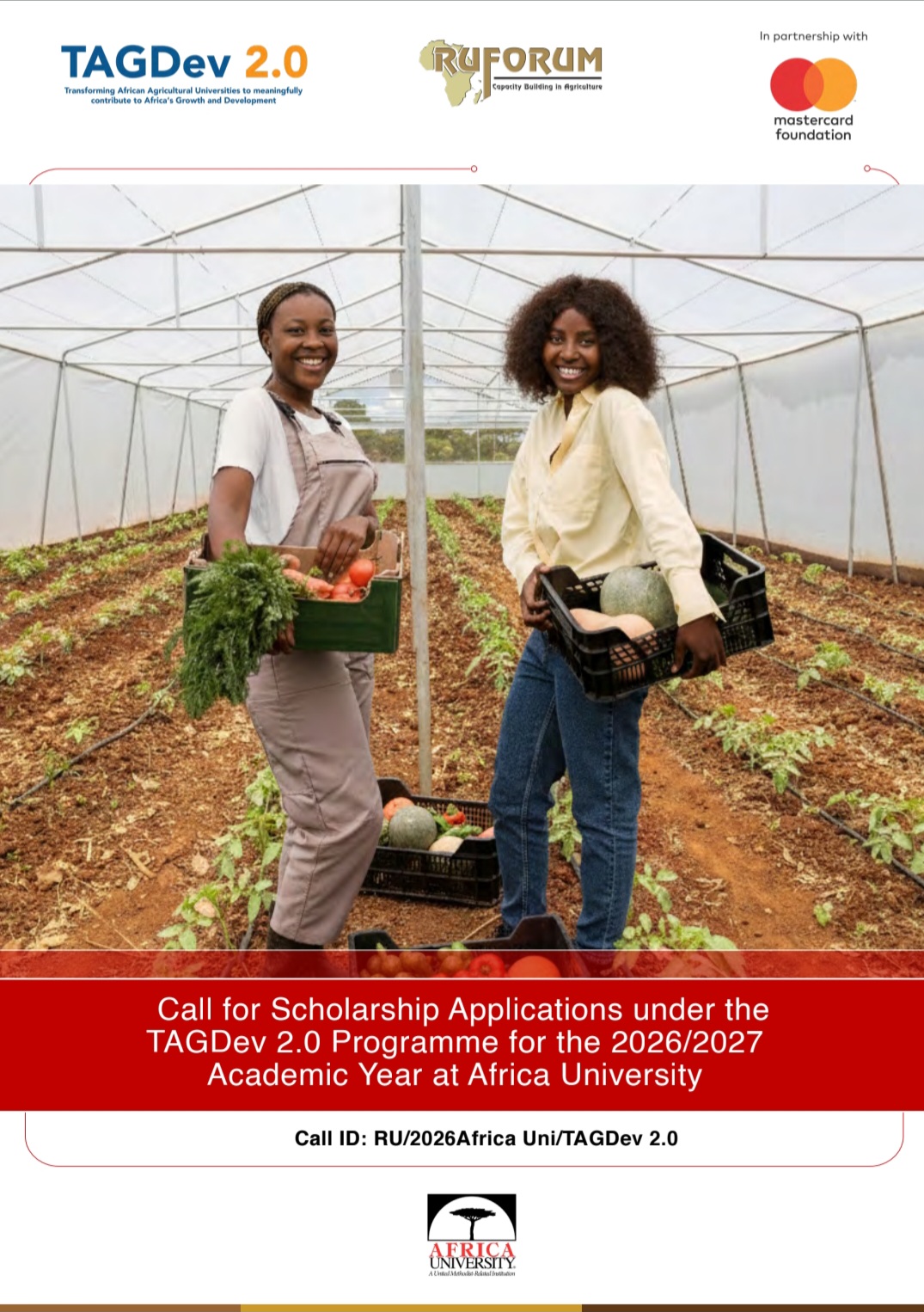 Thursday, April 2, 2026Background The Regional Universities Forum for Capacity Building in Agriculture (RUFORUM) in partnership with Mastercard Foundation, Gulu University (Uganda), Egerton University (Kenya), Africa University (Zimbabwe), University of Free State (South Africa), Malawi University of Science and Technology (Malawi), University of Eldoret (Kenya), Uganda Martyrs University (Uganda), University of Port Harcourt (Nigeria), University of Cape Coast (Ghana), University of Bamenda (Cameroon), National University of Agriculture (Benin), and Université Mohammed VI Polytechnique (Morocco) are implementing a 10 year programme (2023-2033) called Transforming African Agricultural Universities to Meaningfully Contribute to Africa’s Growth and Development (TAGDev 2.0). The programme seeks to strengthen universities and TVET institutions to better serve communities by skilling and empowering Africa’s young people and their institutions to drive inclusive, equitable and climate resilient transformation of agriculture and agrifood systems. The TAGDev 2.0 programme will support young African students that are economically disadvantaged but academically competent to access university education. The scholarship is open to both female and male applicants. However, females, refugees, internally displaced persons, and persons with disabilities are highly encouraged to apply.