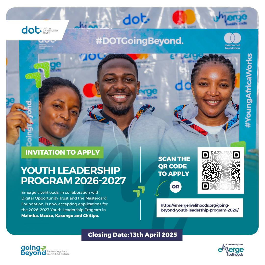 Youths from: MZIMBA, MZUZU, KASUNGU, CHITIPA Applications for the 2026 Going Beyond Youth Leadership program are now open. Join the movement!