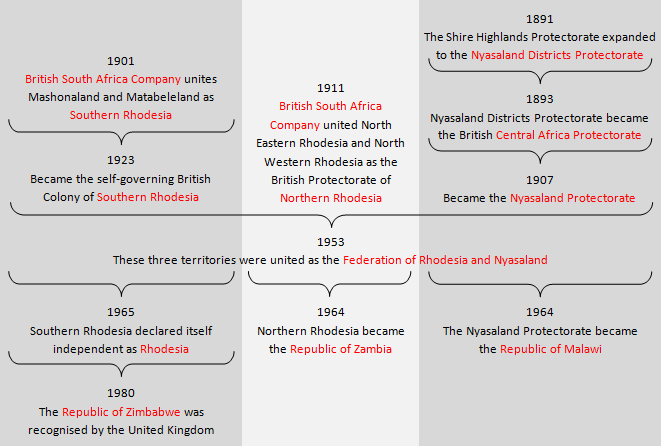 In 1963, the federation was formally dissolved. Within a year Nyasaland became Malawi,Northern Rhodesia became Zambia,Southern Rhodesia later emerged as Zimbabwe after a long and painful struggle.
