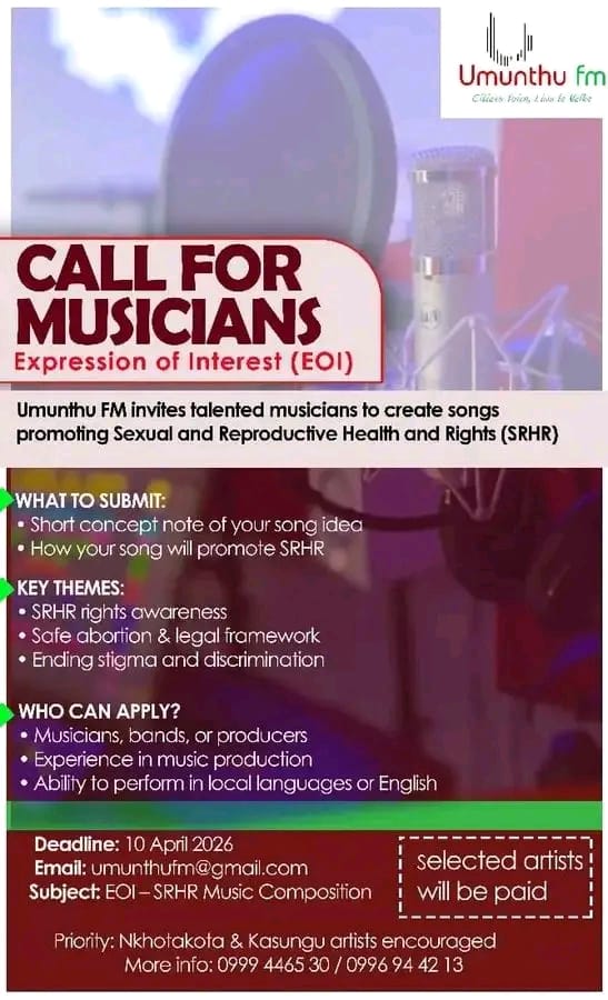 Umunthu FM invites talented musicians to create songs promoting Sexual and Reproductive Health and Rights (SRHR).