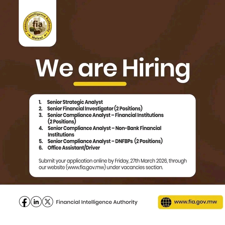 Monday, March 16, 2026Multiple Positions at Financial Intelligence Authority, check out the provided link to view the Positions and requirements.