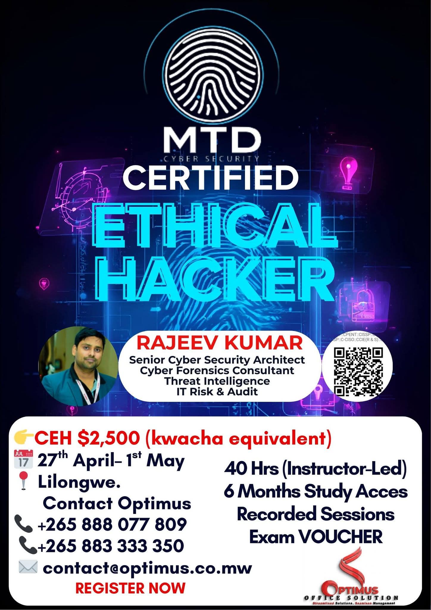Wednesday, March 18, 2026Step into one of the fastest-growing careers with internationally recognised certifications offered by MTD Cyber Security in collaboration with Optimus Office Solutions.