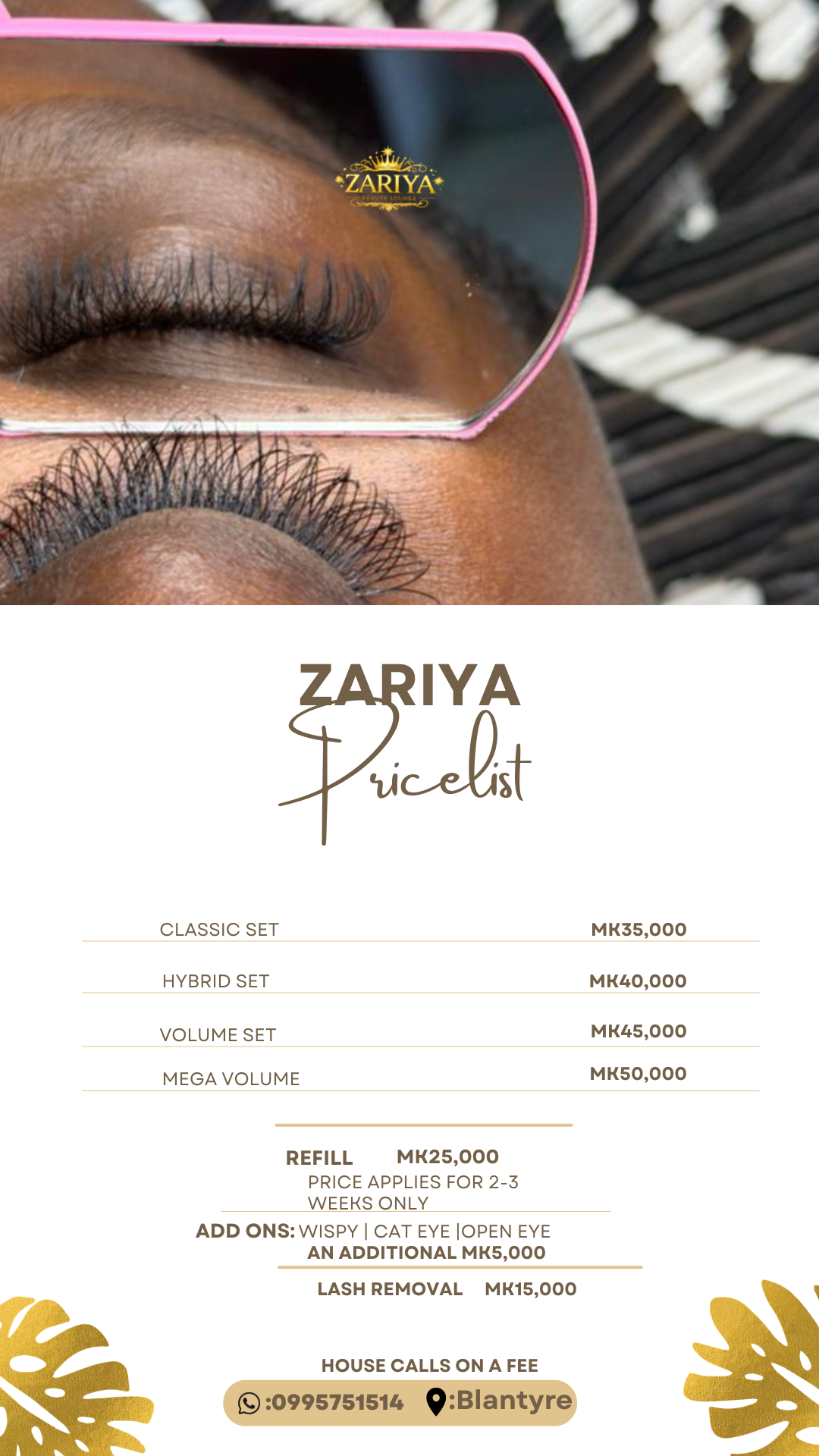 Book your individual lash slots for the week, from Mon-Friday at 8-5 and this is only for house calls!!!