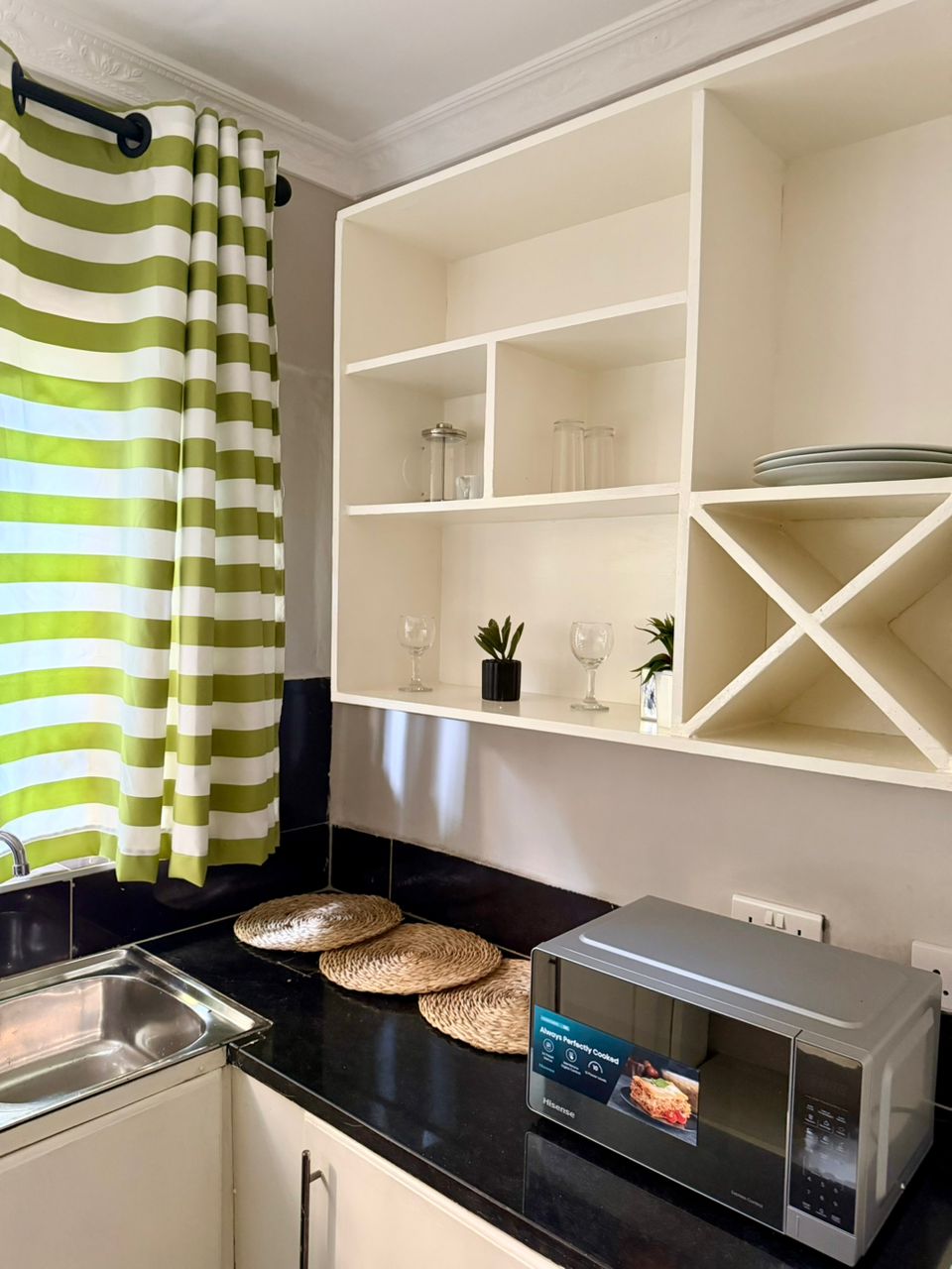 Nestled in lush green gardens, our studio suite comprises of a cozy kitchen, a spacious living area and bathroom in a secure compound.