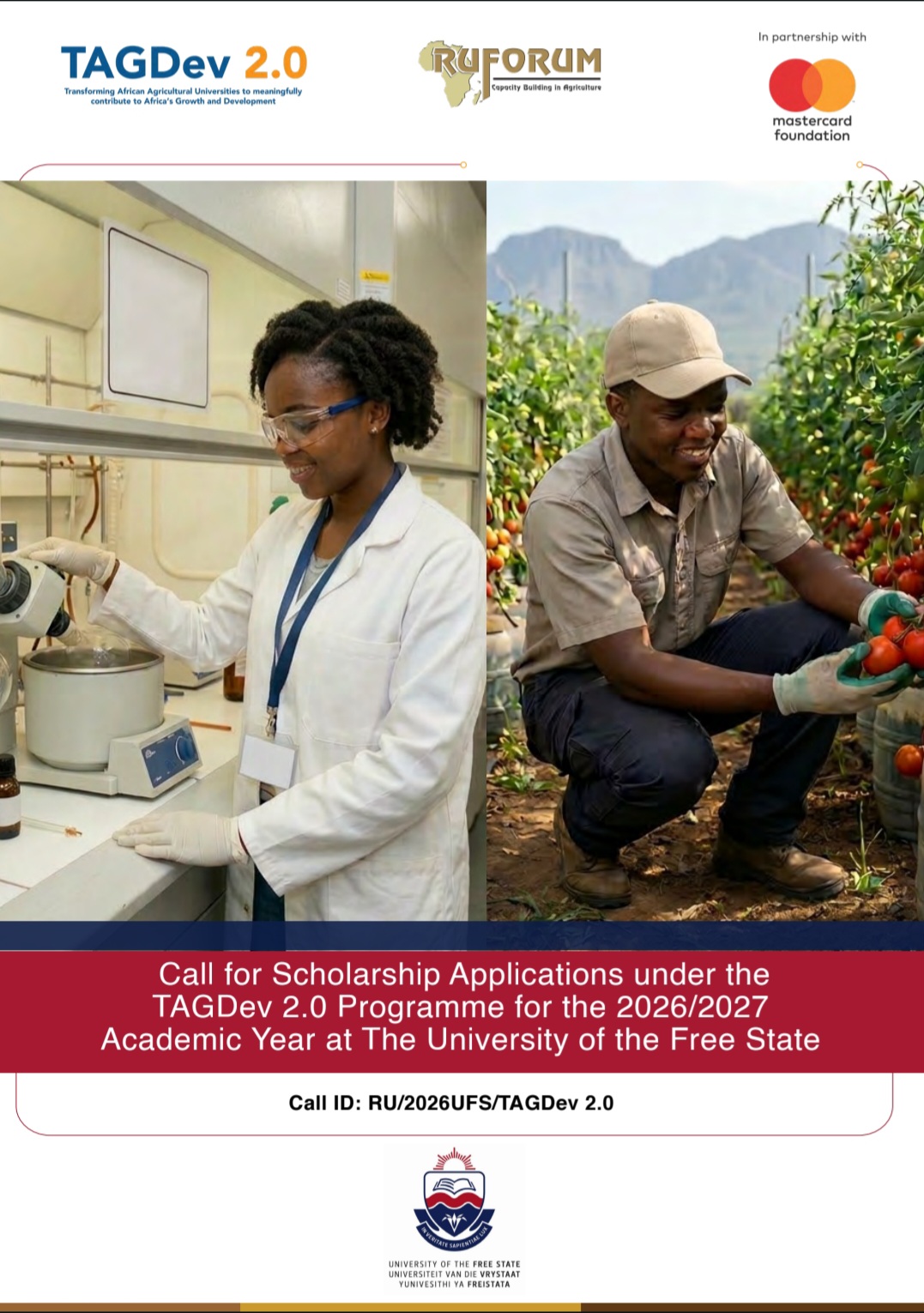 Thursday, April 2, 20261.0 Background The Regional Universities Forum for Capacity Building in Agriculture (RUFORUM) in partnership with Mastercard Foundation, Gulu University (Uganda), Egerton University (Kenya), Africa University (Zimbabwe), University of the Free State (South Africa), Malawi University of Science and Technology (Malawi), University of Eldoret (Kenya), Uganda Martyrs University (Uganda), University of Port Harcourt (Nigeria), University of Cape Coast (Ghana), University of Bamenda (Cameroon), National University of Agriculture (Benin), and Université Mohammed VI Polytechnique (Morocco) are implementing a 10 year programme (2023-2033) called Transforming African Agricultural Universities to Meaningfully Contribute to Africa’s Growth and Development (TAGDev 2.0). The programme seeks to strengthen universities and TVET institutions to better serve communities by skilling and empowering Africa’s young people and their institutions to drive inclusive, equitable and climate resilient transformation of agriculture and agrifood systems. The TAGDev 2.0 programme will support young African students that are economically disadvantaged but academically competent to access university education. The scholarship is open to both female and male applicants. However, females, refugees, internally displaced persons, and persons with disabilities are highly encouraged to apply.