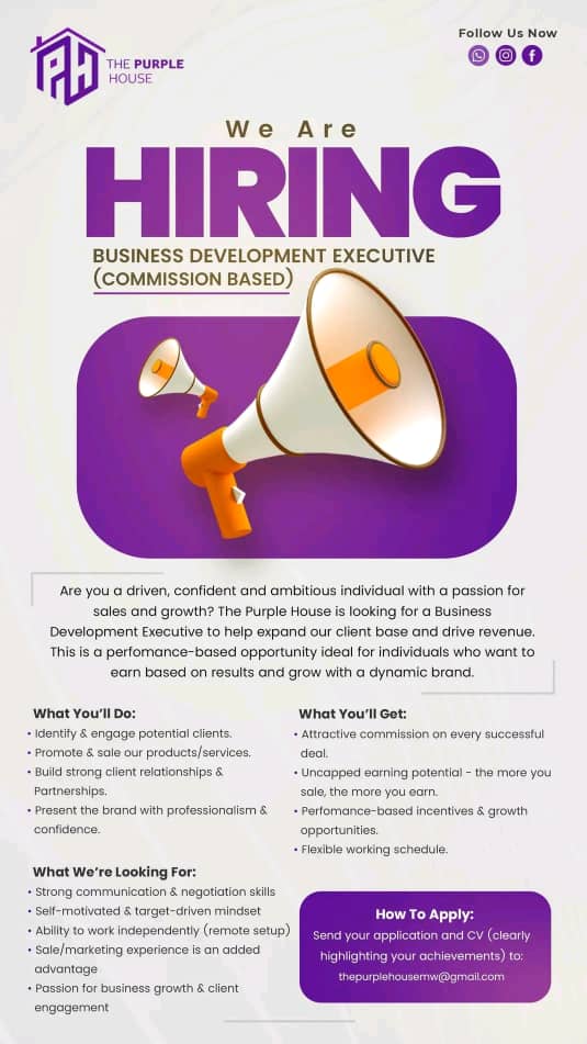 Monday, April 13, 2026POSITION: BUSINESS DEVELOPMENT EXECUTIVE (COMMISSION-BASED)