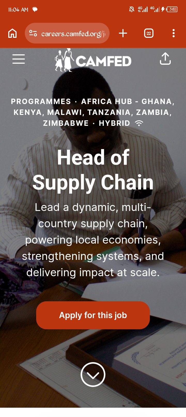 Application for supply chain contract at CAMFED organization