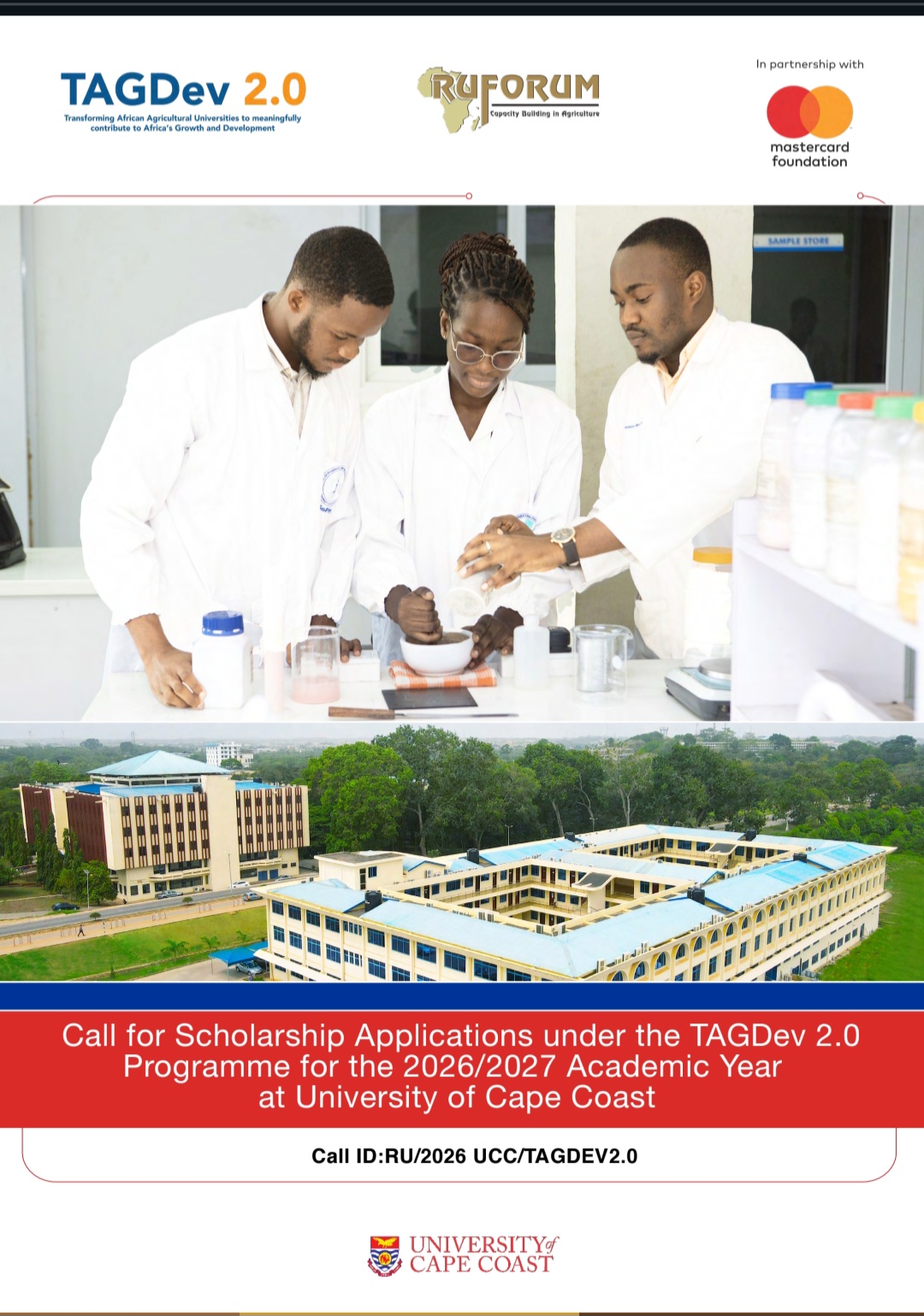2.0 Eligible Programmes at University of Cape Coast This call for Scholarships for the 2026/2027 academic year is open to applicants interested in and eligible to study Bachelor of Science in Agriculture, Bachelor of Science in Agricultural Extension and Community Development, Bachelor of Science in Agribusiness, Bachelor of Science in Horticulture, Master of Philosophy in Molecular Biology and Biotechnology, Master of Philosophy in Agricultural Extension, Master of Philosophy in Aquaculture, Master of Philosophy in Crop Science Programme at the University of Cape Coast, Ghana.