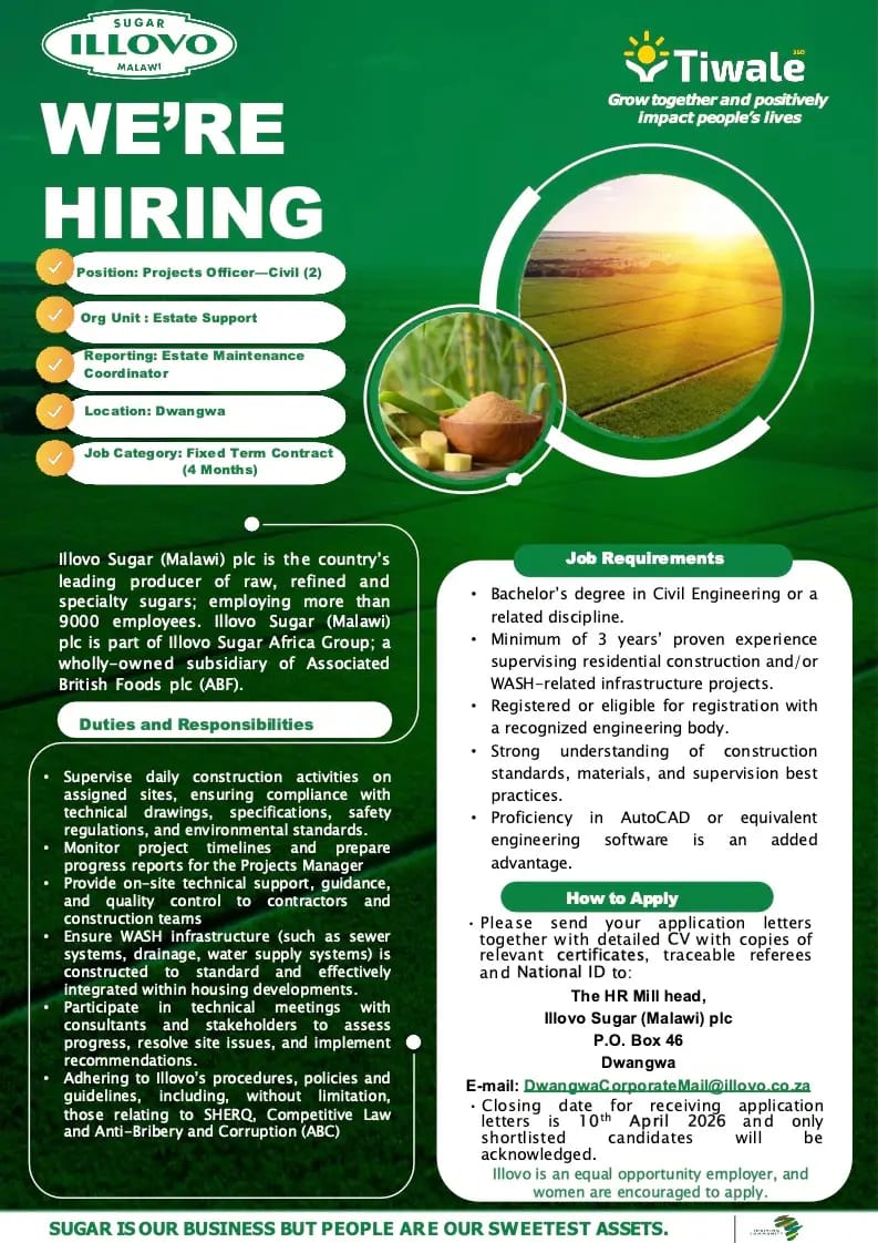 POSITION: PROJECT OFFICER – CIVIL (2 POSITIONS)