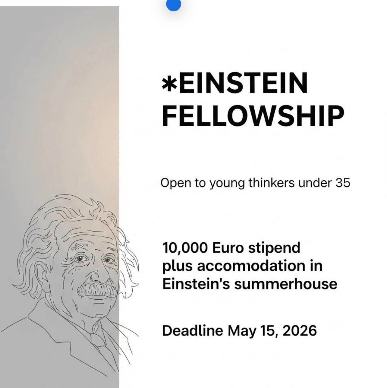 Saturday, April 25, 2026Einstein Forum is offering the prestigious Einstein Fellowship 2026, a fully funded opportunity for young thinkers to pursue innovative, interdisciplinary projects in Germany. ๐ Programme Overview This fellowship supports outstanding individuals under 35 to explore bold ideas outside their previous academic field, encouraging creativity and original thinking. ๐ Benefits ๐ฐ โฌ10,000 stipend for living expenses โ๏ธ Fully funded travel ๐ Free accommodation (Einsteinโs summerhouse) ๐ Opportunity to present your work internationally ๐ค Who Should Apply Young researchers, thinkers, and innovators (under 35) Applicants from all countries Individuals with a strong, original project idea in a new area of interest