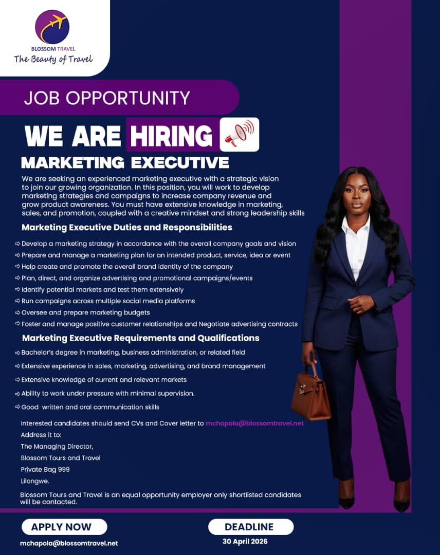 Interested candidates should send CVs and Cover letter to: mchapola@blossomtravel.net