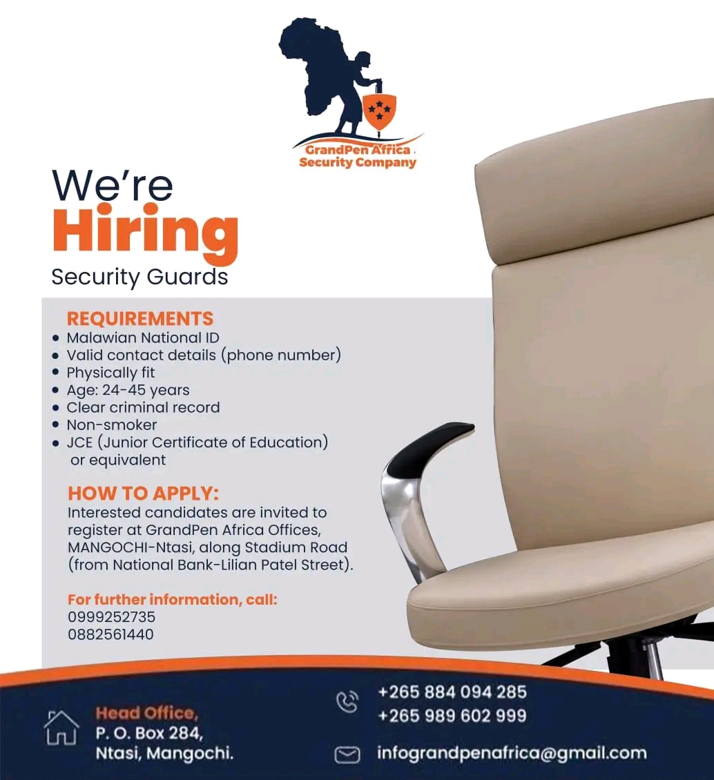 Interested candidates are invited to register at GrandPen Africa Offices, MANGOCHI–Ntasi, along Stadium Road (from National Bank–Lilian Patel Street).